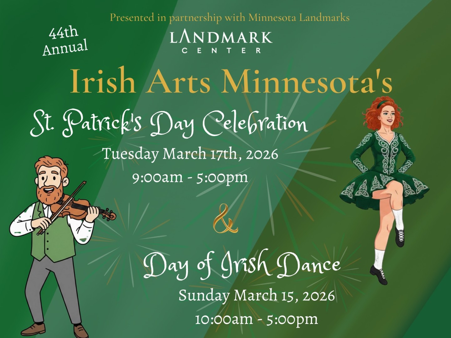 Each year, Irish Arts Minnesota hosts the annual St. Patrick’s Day Irish Celebration in downtown St. Paul, Minnesota. For over 40 years, we’ve invited the community to see local musicians, dance performance groups, art exhibitions, and storytellers